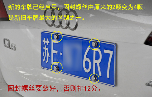 新交規(guī)規(guī)定,車子的前后車牌都必須用四個固封螺絲固定,前后一起就是八個,如果不按照規(guī)定安裝的話,直接扣12分。但是奇怪的是,新交規(guī)出臺后,去車管所上牌時還是只給了四個固封螺絲,這不是和交警對著干嗎?那么我們到底要裝幾個呢?